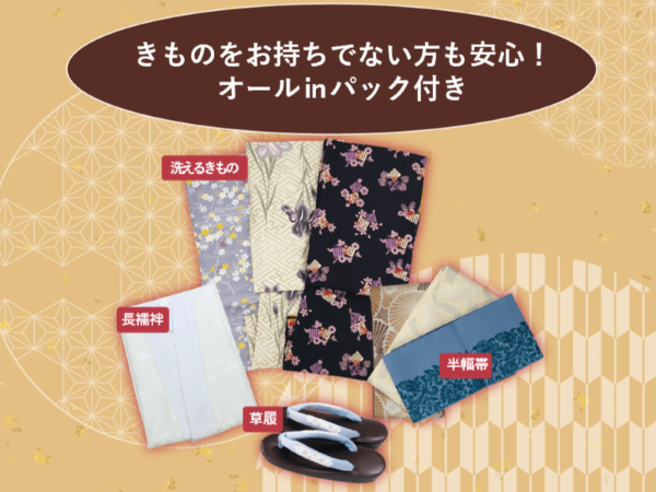 洗えるきもの、長襦袢、半幅帯、草履の4点がもらえます。