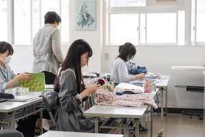 ファッションデザイン、パターンメーキング、縫製技術、ファッションビジネスなど服飾に関する基礎知識と技術を学びます。