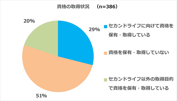 「資格を保有・取得している」人のうち、定年退職後やセカンドライフに向けた取得は60%で、残りの40%はセカンドライフ以外の目的で取得していました。