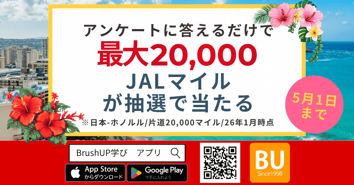 感謝の気持ちを込めて、アンケートにご回答いただいた方の中から抽選でJALマイルが当たるキャンペーンを開催中です!